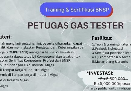 Latar Belakang: Untuk mitigasi resiko di industri migas perlu ditugaskan Pengawas K3 Migas yang berkompeten & bersertifikast BNSP misalnya. Pelatihan ini diberikan kepada tenaga kerja untuk membekali/meningkatkan Kesadaran, Pengetahuan, Keterampilan dan Sikap seorang pekerja agar dapat: Menerapkan peraturan perundang-undangan yang sesuai dengan jenis pekerjaannya Menerapkan Keselamatan dan Kesehatan Kerja di tempat kerja Menerapkan pekerjaan sesuai dengan SOP yang…